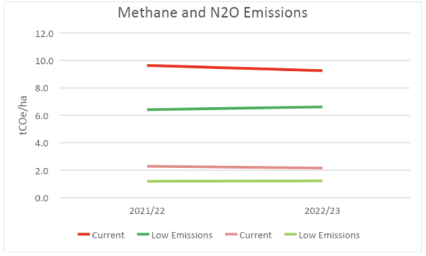 Over the two years the trial has run the Low Emissions farm has dropped total biological emissions relative to the Current Farm by 32-36%. The breakdown of this is shown in Table 2.